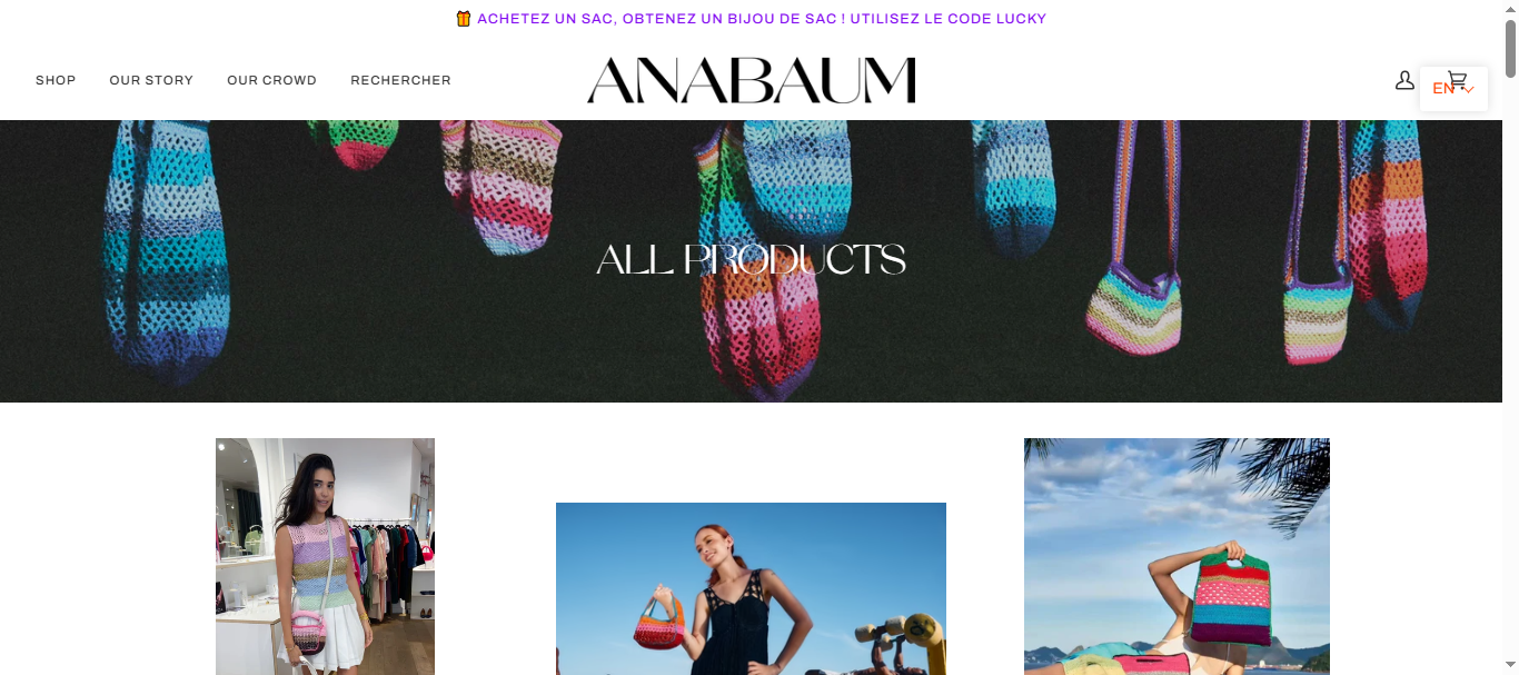 Anabaum is a Parisian crochet brand crafting handmade bags, hats, and unique accessories in vibrant colors, designed to inject playfulness and joy into everyday fashion. Built around artisan skill, sustainable materials, and heartfelt storytelling, Anabaum outputs joyful meaning—one stitch at a time.