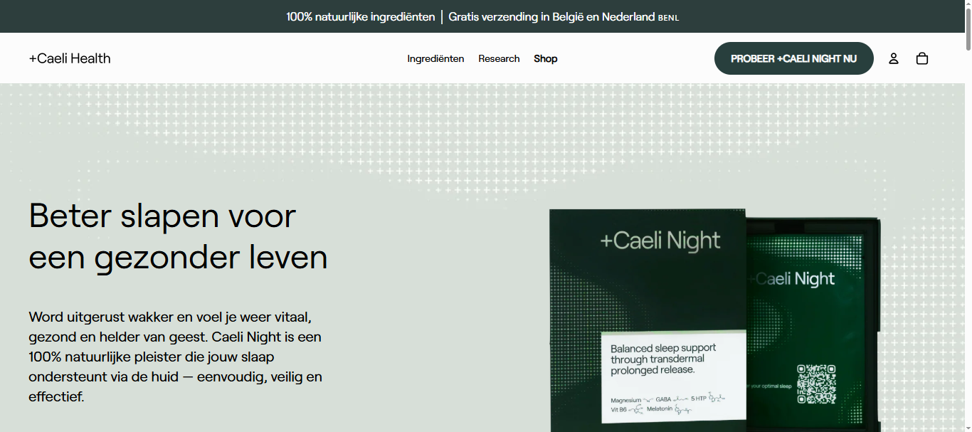 Caeli Health offers +Caeli Night, an innovative, all-natural transdermal patch designed to support restorative sleep and healthy aging through sustained skin absorption. The product is positioned with a wellness-first approach, emphasizing cellular recovery, immune support, and vitality.