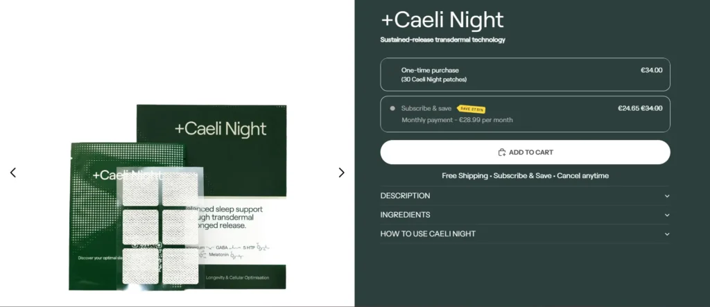The main challenge was designing a Shopify store that communicates scientific credibility while maintaining a visually appealing and intuitive shopping experience. CaeliHealth offers specialized products like the +Caeli Night transdermal patch, which requires educational storytelling to convey its benefits effectively.